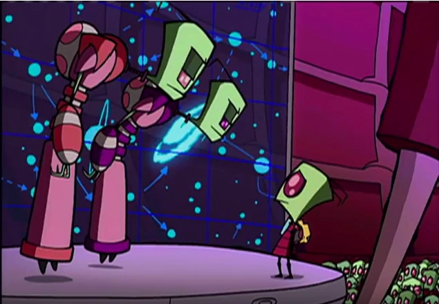 Later, after Zim realizes that the Armada is not coming anywhere near Earth, he falls into a deep depression and is even willing to give up and let Dib capture him. However, after learning about the Membracelets, he snaps out of it and concocts a plan to seize control of Membrane Labs and use the bracelets to transport Earth into the Armada's path so that the Tallest have to come to him; their reaction to this is to become so enraged that they care more about blowing up Earth to finally get rid of Zim than the fact that they're on a collision course with the Florpus Hole created by Earth being moved. And when Professor Membrane manages to send Earth back to its proper place before it can be destroyed, the Tallest are so relieved Zim is gone that they barely react to flying into the Florpus. Zim, meanwhile, continues to remain oblivious to how the Tallest feel about him. Their subsequent death in the dimension of fire confirmed this, as Zim feels their screams of seering pain are of excitement instead.
