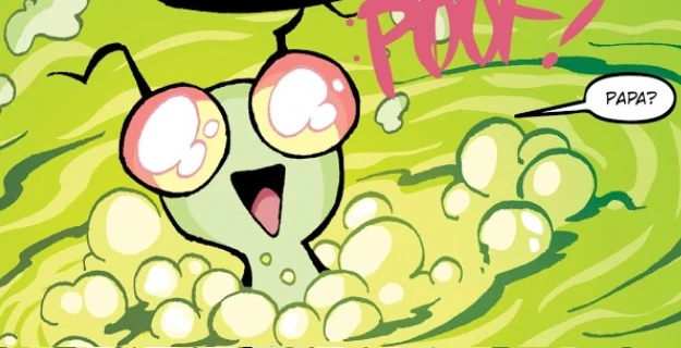 In Issue 7, a smeet that looks similar to Zim was born out of his DNA, the fluid of his Voot Cruiser, and the environment of the formerly lifeless planet. This was the first Irken smeet witnessed being born without the use of cloning. Another notable aspect of this smeet is the smeet's lack of a PAK, which could imply that Irkens currently become dependent on the device (or its components) upon adulthood. Another possible explanation is that newborn smeets can survive without a PAK for a short period before ultimately expiring. Another notable aspect of this smeet is their eye color; the smeet's eyes are amber, like Gaz's eyes, along with a bit of ruby like Zim's eyes.
