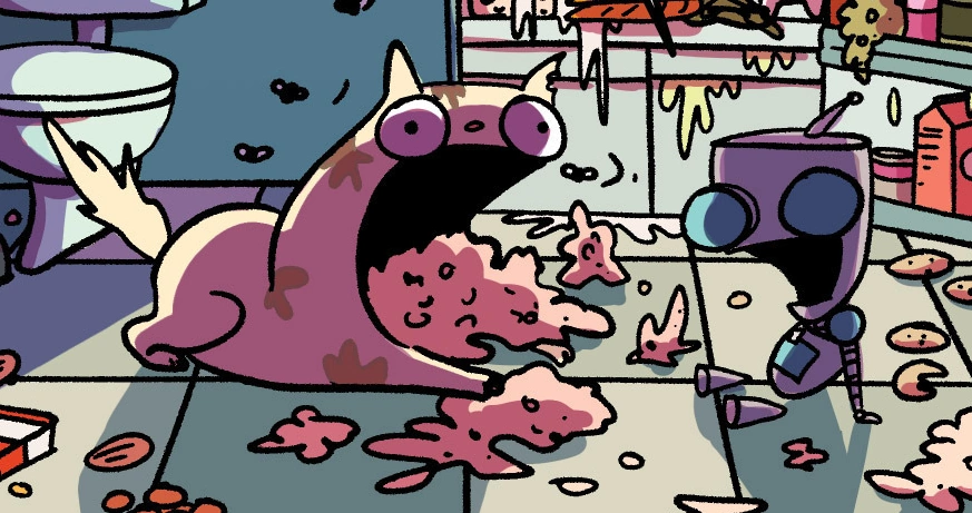A disgruntled Zim returns home, where GIR tries to cheer him up by revealing Tuna came back. However, this just causes Zim to discover he has allergies too, as the comic ends with him breaking out in hives.