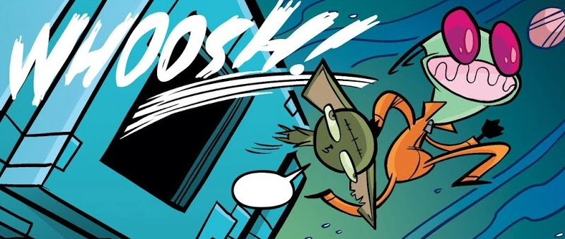 - The prison Zim is sent to, Moo-Ping 10, was first mentioned all the way back in Issue 1 as where Prisoner 777 was relocated to from his original imprisonment on Vort.