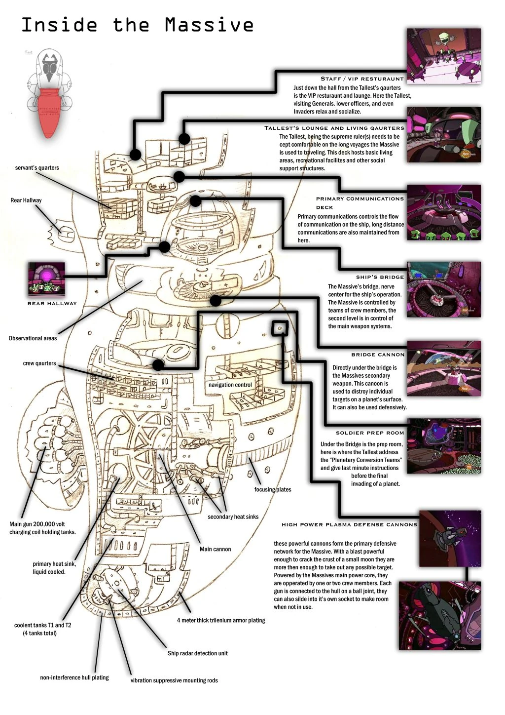 - The Massive is compatible with Vortian technology, as seen in "Backseat Drivers" where the Irkens were able to switch the Massive's power core with the one in the Resisty Ship. This is unsurprising, however, as the Massive was mostly built by the Vortians as stated by Captain Lard Nar and documented in the unseen episode "The Trial".