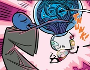 His investigation is stymied by the fact that the people he's interrogating (Dib and Zim) have such strong personal biases that they display totally incompatible stories, making it impossible to tell what really happened. And since Gaz wasn't actually paying attention to the fight that destroyed his probe, meaning her memories aren't helpful, a desperate Inquisitous uses the Visualizer on GIR, whose insane and random thoughts overwhelm the Visualizer and destroy Inquisitous' entire ship.