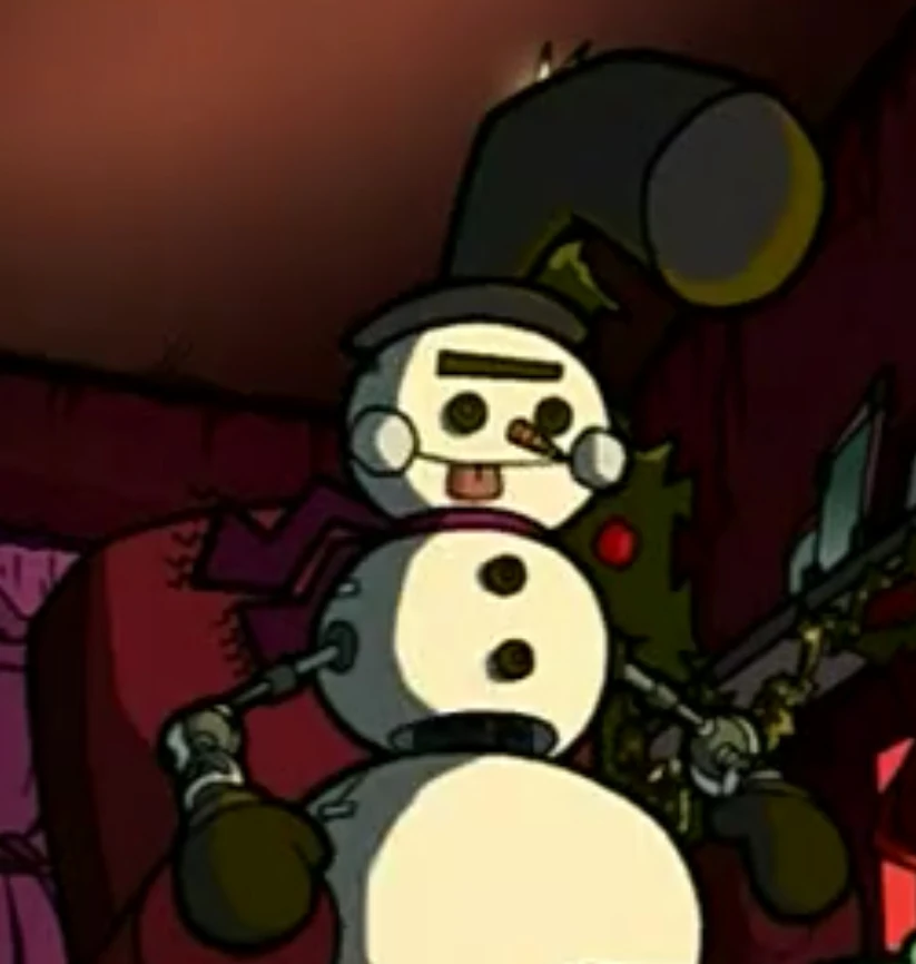 Mr. Sludgey is a robotic snowman that made his only appearance in "The Most Horrible X-Mas Ever", where he told a tale that had happened on Earth two million years ago when Zim he caused the "Most Horrible X-Mas Ever".