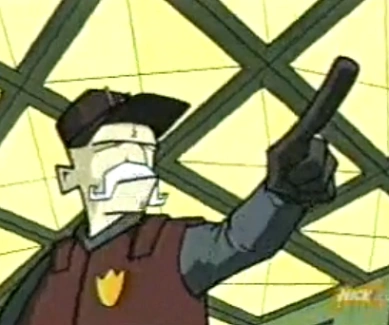 Officer Prambly is the chief of the Earth police force, and is best identified by his squinty eyes, square jaw and large, white, handlebar mustache. He was voiced by S. Scott Bullock.