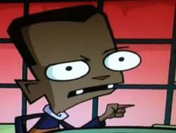 He later appears in Issue 38, being one of the skoolchildren who is fooled by GIR's Dib disguise; in particular, he notes that Dib's head is "too small" for him to be the real Dib. He then joins the other children in forming an angry mob and chasing Dib into the woods. Later, he's shown to be one of the students whom GIR-as-Dib is convincing that Zim is an alien, and later still becomes convinced that Dib is a zombie and chases him back into the woods as part of another mob.
