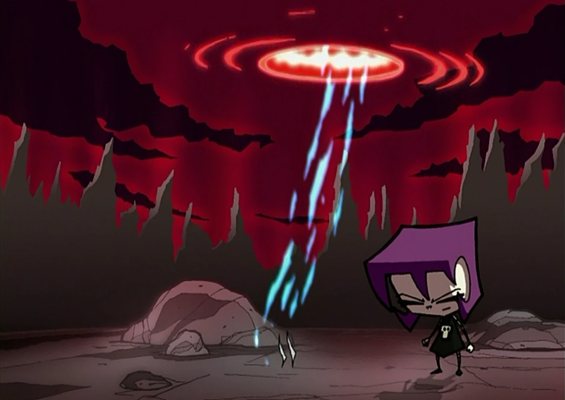 After Gaz passed the trial, the curse is lifted and she got to play Super Kicky Fighters against the Shadowhog, eat ice cream, have a tea party, etc. However, if one fails the trial, they have to clean the bathroom/torture room with their head, as Dib did. This room could be considered a dimension of its own, as it is entered through a two-dimensional door with nothing behind it.
