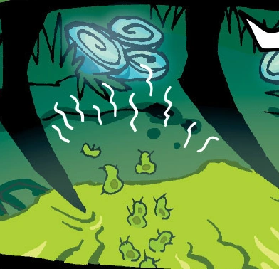 These aliens originated from an unnamed lifeless planet that Zim crashed on. The fluid from his Voot Cruiser mixed with the materials on the planet, causing a sort of primordial pool to appear and fill the planet with life. The life forms on this planet are in a state of extreme hyper-evolution, so their appearance gradually changes throughout the comic.