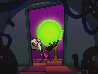 As Zim and GIR clean up the wreckage, Zim encounters an unusual, glowing green fireball about the size of a golf ball, but slowly expanding. As it turns out, this is a city-destroying explosion that resulted from the incident.
